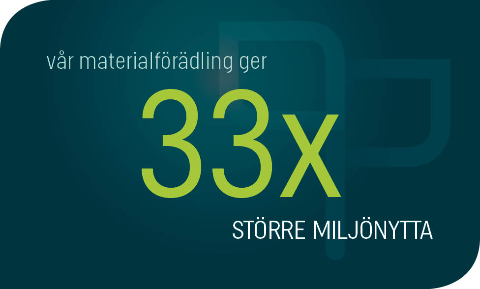När vi redovisar föregående års siffror i vår nypublicerade hållbarhetsredovisning, kan vi med glädje konstatera att miljönyttan av vår materialförädling var hela 33 gånger större än den miljöpåverkan vår insamlingsverksamhet medförde – något som återigen gör oss till miljövinnare!