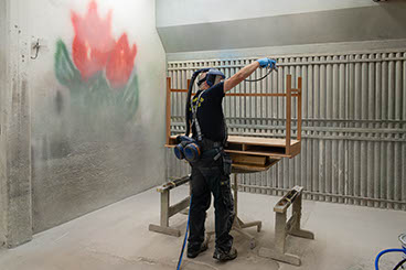 – Vi snickrar och lackar möblerna, men ansvarar även för att emballera dem och skicka dem till Svenskt Tenns centrallager, förklarar Fredrik.