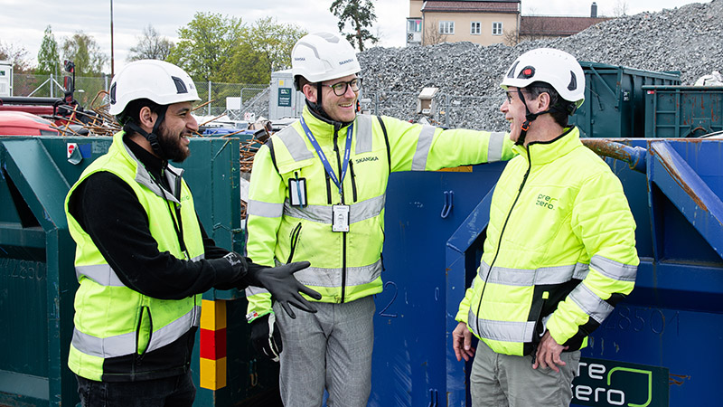 Pallwise, som är specialister på återbruk av byggpallar, har också en viktig roll i projektet. – Det är väldigt roligt att vi fått förtroendet att bidra i detta stora projekt. Vi möjliggör återanvändning av byggpallar och har även ett samarbete med Vi-skogen. För var 20:e räddad pall planterar vi ett träd, berättar Isabelle Waldrén från Pallwise. Bland byggaktörerna finns Skanska, som bygger en gymnasieskola på uppdrag av Atrium Ljungberg. – Samarbetet med PreZero fungerar mycket bra, precis som det gjort i alla våra tidigare projekt. De är punktliga och flexibla – har vi fått besked om att de ska hämta kärl eller containrar en viss tid, då sker det. De hjälper oss också att hålla koll på nya fraktioner och hur vi sorterar på bästa sätt, vilket är ett stort stöd, säger Fredrik Meckbach, produktionschef på Skanska Sverige. [caption id="attachment_4063" align="aligncenter" width="800"]